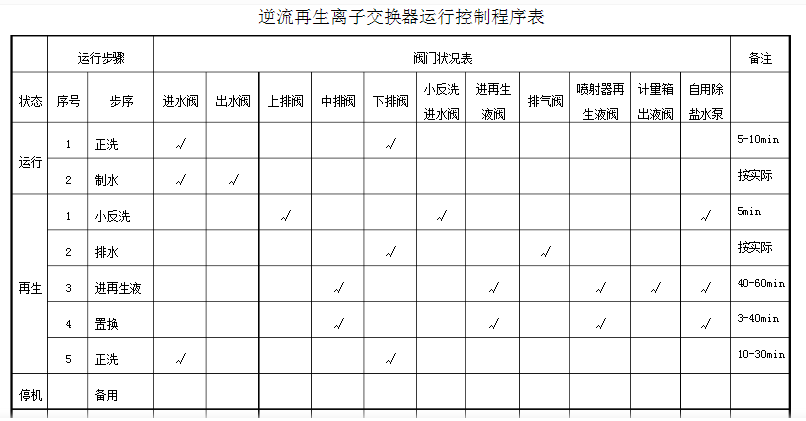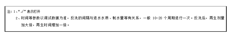 本说明叙述的为该设备的常规操作,其在水站系统工作中的操作程序请以“运行说明”为准(阳、阴床串联运行则同 时再生)。
