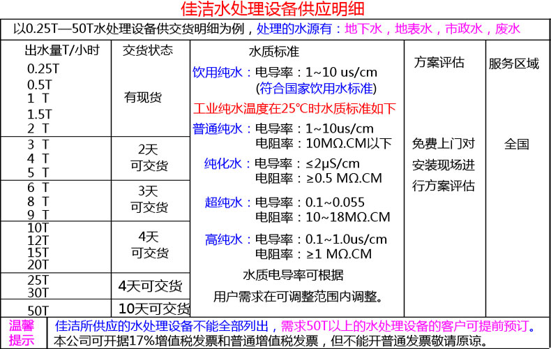 质量承诺:佳洁作为水处理设备供应商、所供应的产品均为自产自销产品、水处理设备符合国家JB/T 2932-1999工艺标准、出水