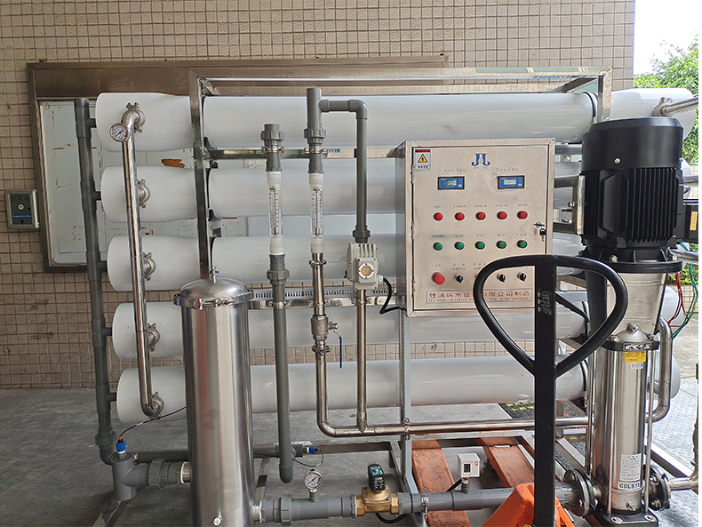 石英砂过滤器一般内部装有精致石英砂,用于去除自来水中的悬浮物、污泥、胶体等,活性炭过滤器是主要用来去除水中的有机物、病菌和吸附水中的余氯;精密过滤器内部装有5um的PP棉滤芯,去除水中5um以上的杂质,保护反渗透膜;反渗透系统是纯水系统的“心脏”,经过反渗透系统,使水中杂质的含量降低,提高水质的纯度,其脱盐率可达到97%以上,并能将水中大部分的细菌、胶体以及大分子量的有机物去除。