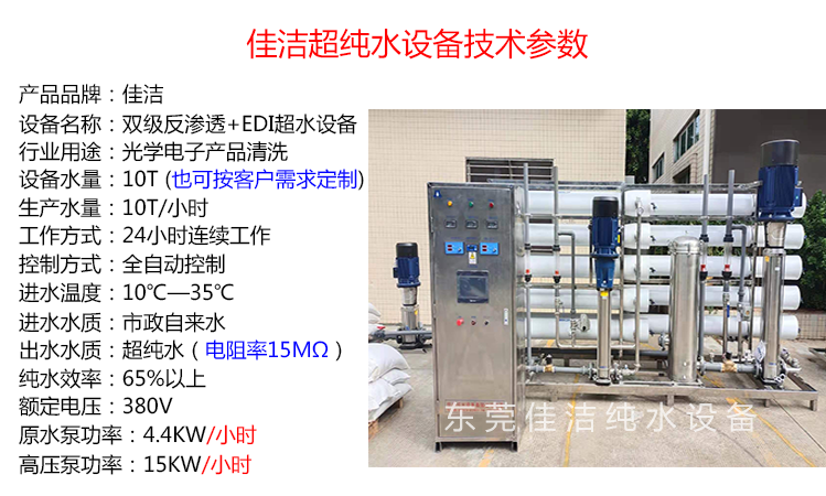 双级反渗透EDI超纯水系统主要用于电子工业用edi超纯水设备主要针对电子、半导体、液晶显示、玻璃镜片,导光板,手机屏幕、集成电路芯片、液晶显示、高精度线路板、光电器件、各种电子器件、微电子工业、集成电路需用大量的超纯水来清洗半成品、成品,如果所用水质达不到生产工艺用水的要求或者水质不稳定就会影响到清洗效果和使用寿命。特别是电子行业的电子管生产中,如果超纯水中混入杂质,就会影响电子的发射,进而影响电子管的放大性能及寿命,用在显像管和阴极射线管生产中就会使发光变色、变暗、闪动并会造成气泡、条迹、漏光点等废次品。所以每款产品在生产过程中都有严格的生产工艺,所以电子产品产品的清洗就需要电子工业用edi超纯水设备来满足生产需求。