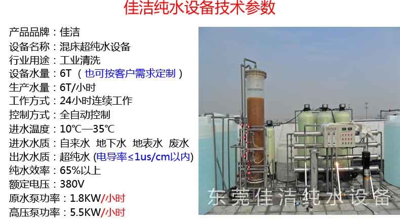 佳洁公司将始终立足于科技的最前端,以当地水质为实情,为客户提供不断创新的产品和服务。公司根据客户的需求而设计最为合适客户实际情况的脱盐水系统设备处理方案,加上超值的全方位技术服务以满足客户不同的、特殊的需求,从而有效的协助客户解决问题,最大限度的帮助客户降低成本。反渗透混床超纯水设备是结合反渗透的高脱盐率及混床对其脱盐水进行更深度的脱盐,是制取纯水、高纯水的首选设备,它不仅脱盐率高、而且产水稳定。系统控制采用PLC,完善的保护系统,确保整套装置可做到无人职守,自动化运行程度高。