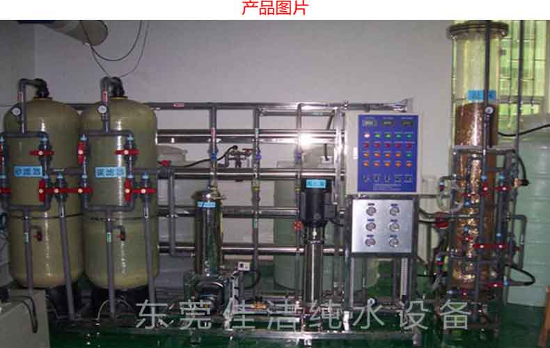 2、原水→原水加压泵→石英砂过滤器→活性炭过滤器→软水器→精密过滤器→一级反渗透 →PH调节→纯水箱→混床阴阳离子交换系统→紫外线杀菌器→ 微孔过滤器→用水点。出水电导率达到≤0.1μs/cm(电阻≥10MΩ.CM)。