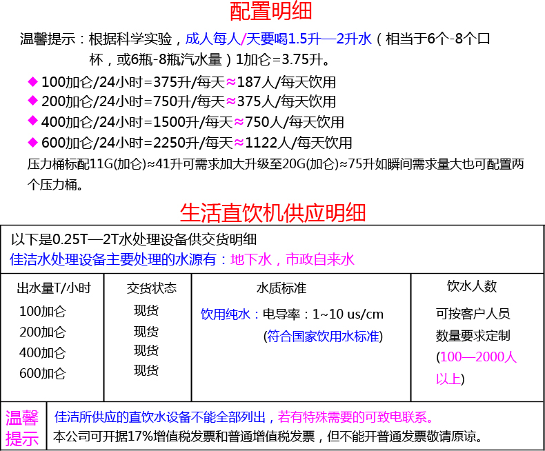 设备水量:100—600加仑(可按照客户需求定制)