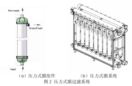 压力式超滤膜系统水通量高,膜的通量为40~120 lmh,需要的膜面积较少。