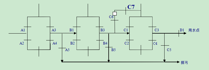 5.反洗:开 C2、C3、C5 (2-3 分钟) 关 C1、C4、D1