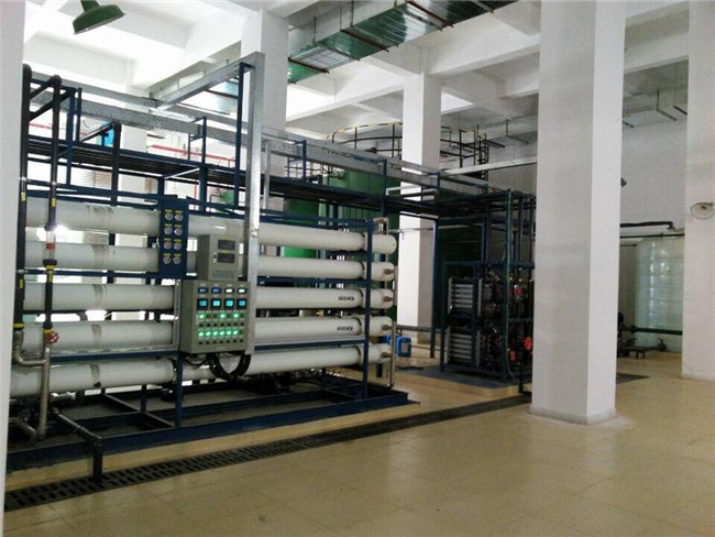 20吨超纯水设备其基本工艺流程为:原水→砂碳过滤器→反渗透设备→原水箱→纯水泵→电去离子(EDI)→纯水箱→用水点
