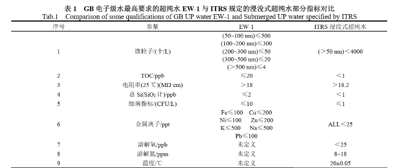由于超纯水的原水通常是自来水,我国的国标规定的自来水没有TOC的标准,代表有机物含量的指标是 CODmn,限值是 3 ppm,常规的自来水中的TOC大概在 1~3 ppm 左右。表1中对TOC 的要求是 ppb 级的,所以对于TOC的处理也是需要多级工艺处理才可能达到水质要求。ACF、UF、RO 和 EDI 等都有处理TOC 的能力。通常经过这些前端处理,TOC大概降至10~30 ppb左右,再通过 TOC-UV灯装置,能将TOC降至小于1 ppb,最终达到半导体工厂的超纯水水质要求。