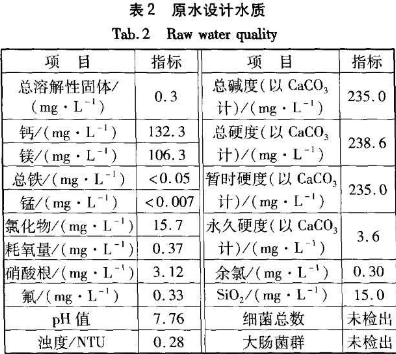 分享实例:某生物制药公司广州研发中心(以下简称“NN”)和某知名医药企业上海研发中心(以下简称“cov”)实验室,实验清洗用水、消毒灭菌器等用水一般为二级水即可,通过集中管路系统供给,在一些局部有高纯要求的使用点再单独加设末端超滤装置以制备出高纯水。该生物制药公司的实验楼区域分为CB、MC和PC三个部分,使用功能和用户均不尽相同,但均需满足GLP/GMP等认证要求,设计中采用的当地原水水质(进水水质)如表2所示。