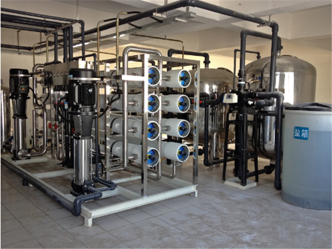 二级反渗透纯水设备的组成有原水泵、絮凝剂加药装置、多介质过滤器、还原剂加药系统、活性炭过滤器、加药计量泵、阻垢剂加药装置、精密过滤器、反渗透膜、一级高压泵、二级高压泵、中间水泵、紫外杀菌器、中间水箱、纯水箱(选配)、电导率在线监测仪、PH在线监测仪、不锈钢阀门管件、不锈钢支架,二级反渗透纯水设备原水进水水质为电导率≤300μs/cm。产水水质:电导率≤2μs/cm@25℃;